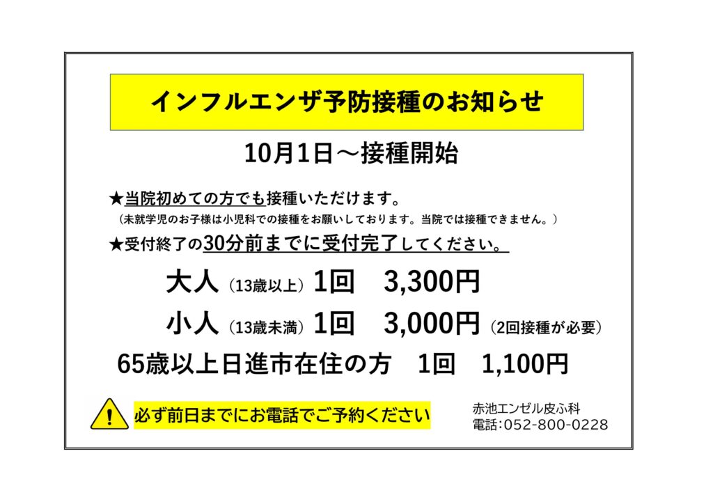 2025年シーズンのインフルエンザ予防接種の予約受付しています。